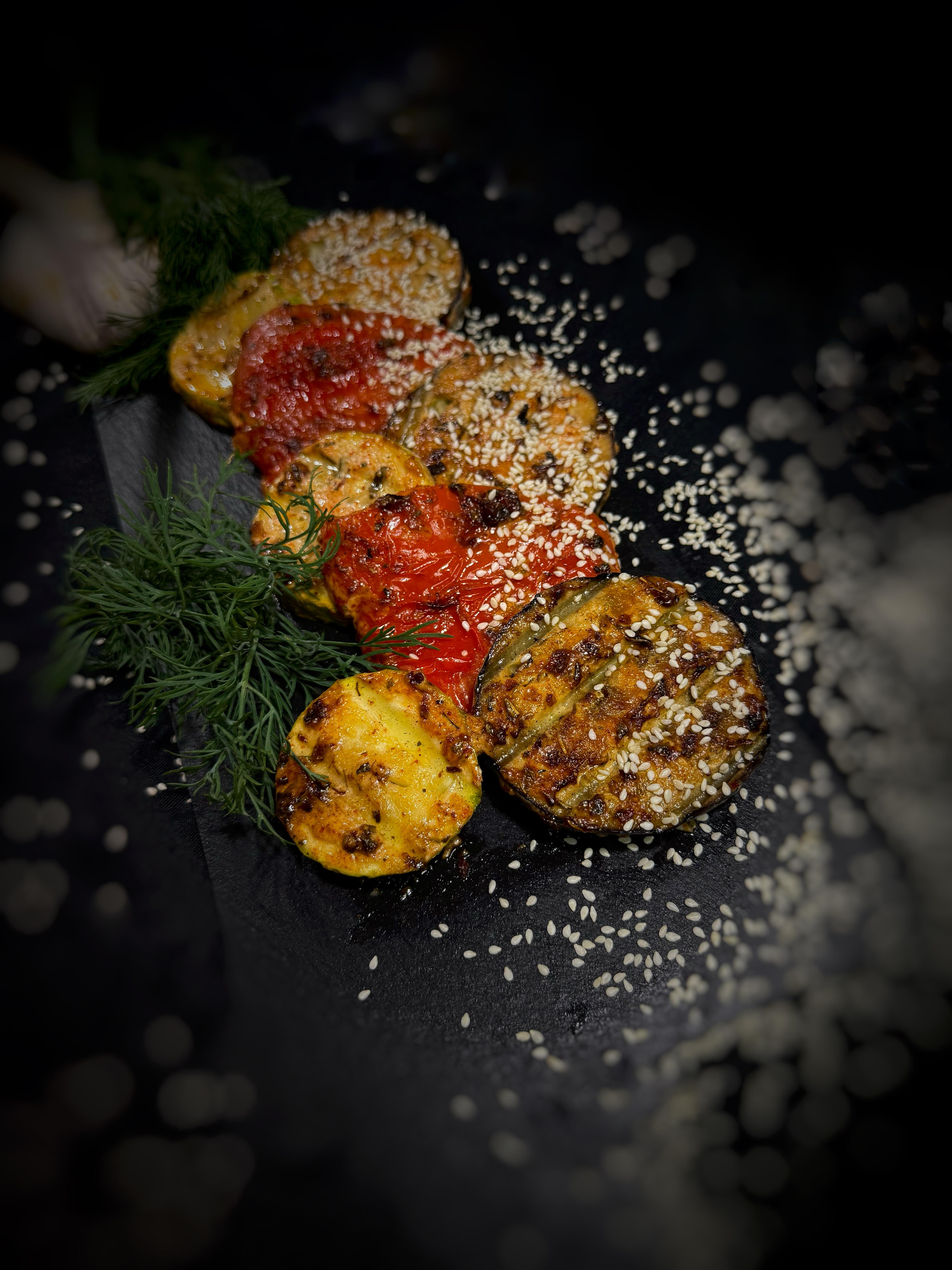 Болгарский перец, баклажан, кабачок приготовлены на мангале 100 грамм