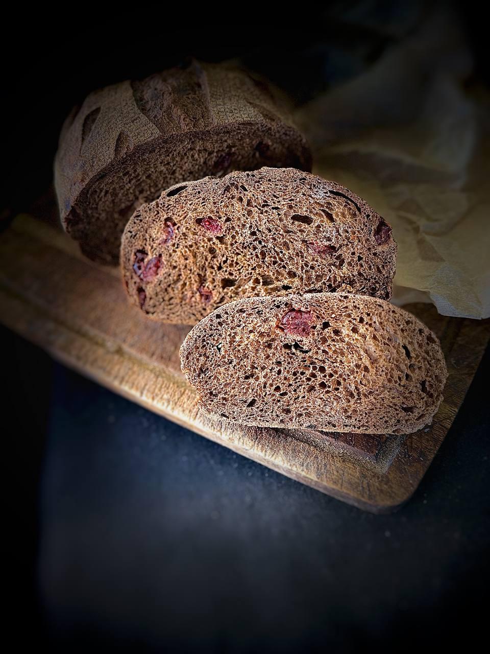 Всегда свежий хлеб "Клюква" 700 грамм Состав: мука пшеничная высший сорт, солод ферментированный, мука ржаная, вода, закваска пшеничная, соль, вяленная клюква